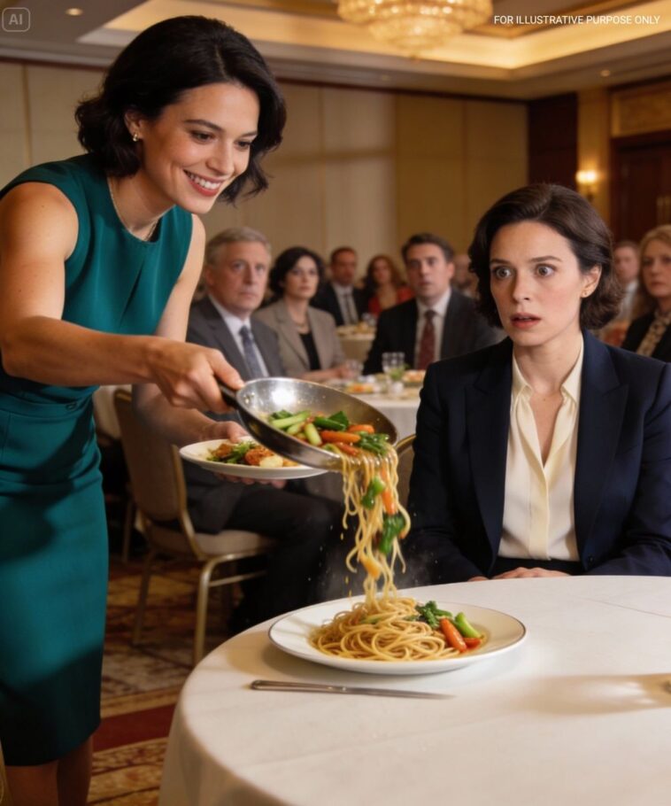 I took a breath, met her eyes, and calmly placed a card onto her sauce-stained plate.