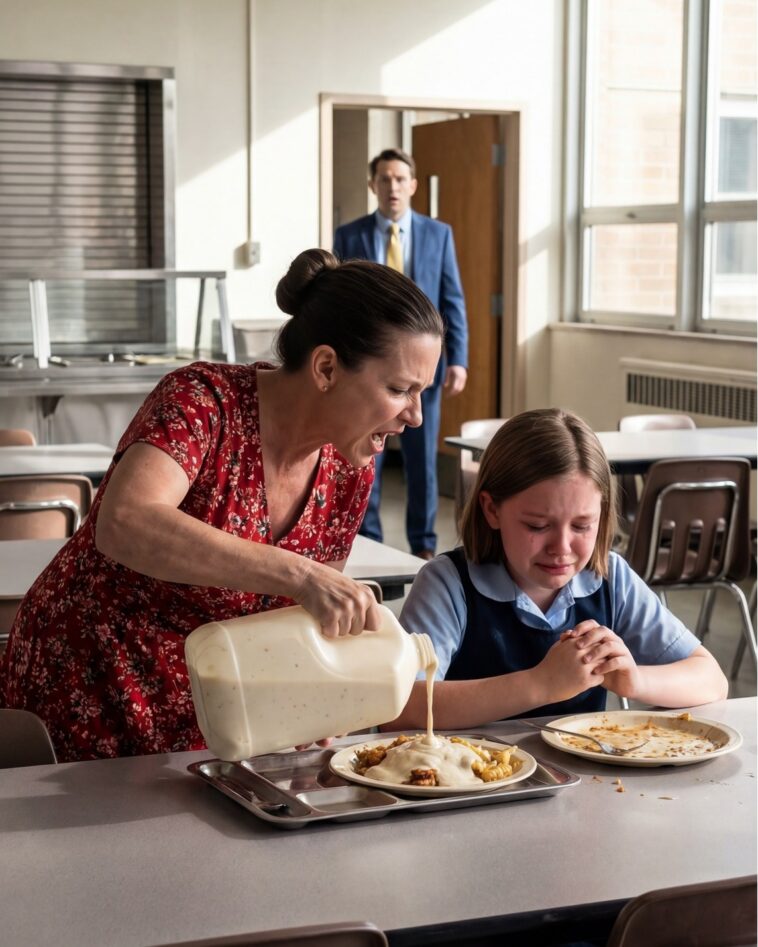 When Jonathan left for work, Vanessa’s patience vanished. She criticized Emma’s every move, dismissed Mrs. Carter, and controlled the child’s routines. Lunch became the worst moment: Emma was sent to a corner table, meals swapped with leftovers, and told, “You don’t appreciate what you’re given. This will teach you respect.”